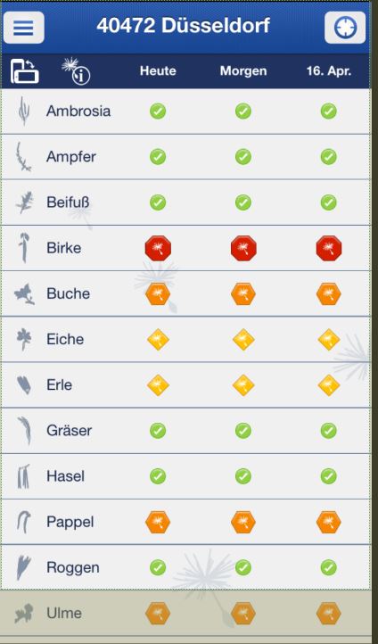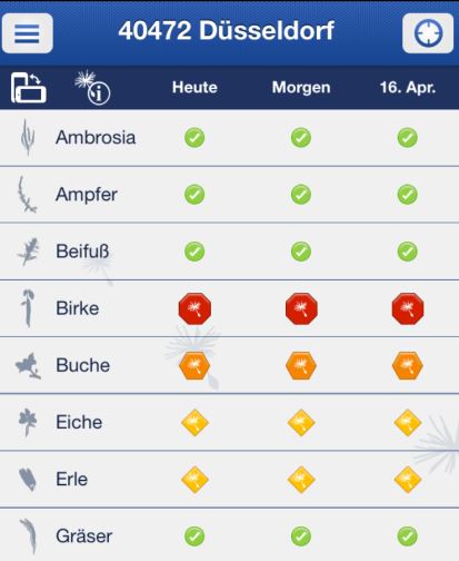Damit sich jeder Allergiker besser auf die „heißen Phasen“ vorbereiten kann und nicht völlig überrascht am Ende des Tages zum Asthmaspray greifen muss, gibt es hilfreiche Apps für das Smartphone, um den aktuellen Pollenflug im Auge zu haben. Die App Pollenflug ist zum Beispiel solch ein nützlicher Helfer, der mit wenigen Klicks anzeigt, welche Pollen in den nächsten Tagen besonders stark ihr Unwesen treiben werden. Momentan blüht beispielsweise die Birke in voller Blüte und sorgt für ihr Unwesen. Die App bietet detaillierte Informationen zu den jeweiligen Übeltätern und zeigt dessen Hochphasen im Jahr an. Ebenfalls ein guter Service, um sich im Vorfeld mental auf die Zeit vorzubereiten.