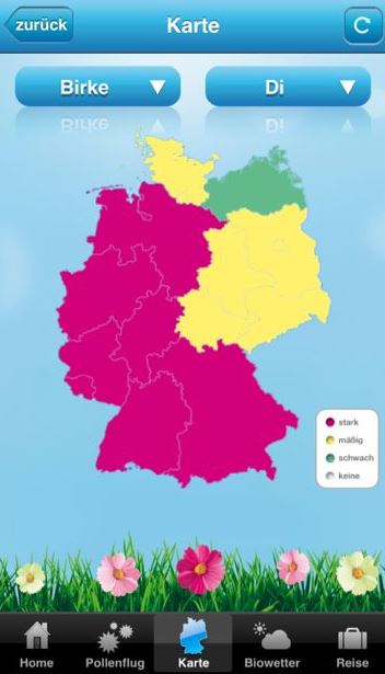 Polleninfo ist ebenfalls eine hilfreiche App, um sich einen Überblick zur aktuellen Lage der Nation zu verschaffen. Hier bietet sich für den Anwender die Möglichkeit, die Pollenlage in ganz Deutschland anzeigen zu lassen. Zusätzliche Hintergrundinformationen sowie eine Apotheken-Lokalisierung runden das App-Angebot ab.