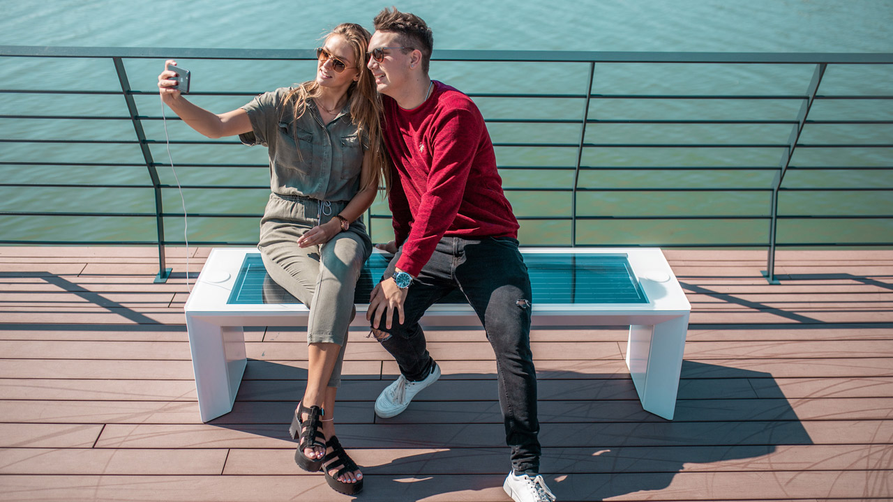 A bench is one of the oldest and most common pieces of street furniture you can find anywhere in the world. What’s exceptional is, that the bench didn’t change in thousands of years. That’s why we reinvented the bench for the 21st century to make it more useful for urbanites and local businesses. We want it to be a smart social hub for people in the outdoor space but we also wanted it to serve community needs as well as the personal needs of the citizens. And it works: Today you can find our smartbenches in 50 cities in the world.
