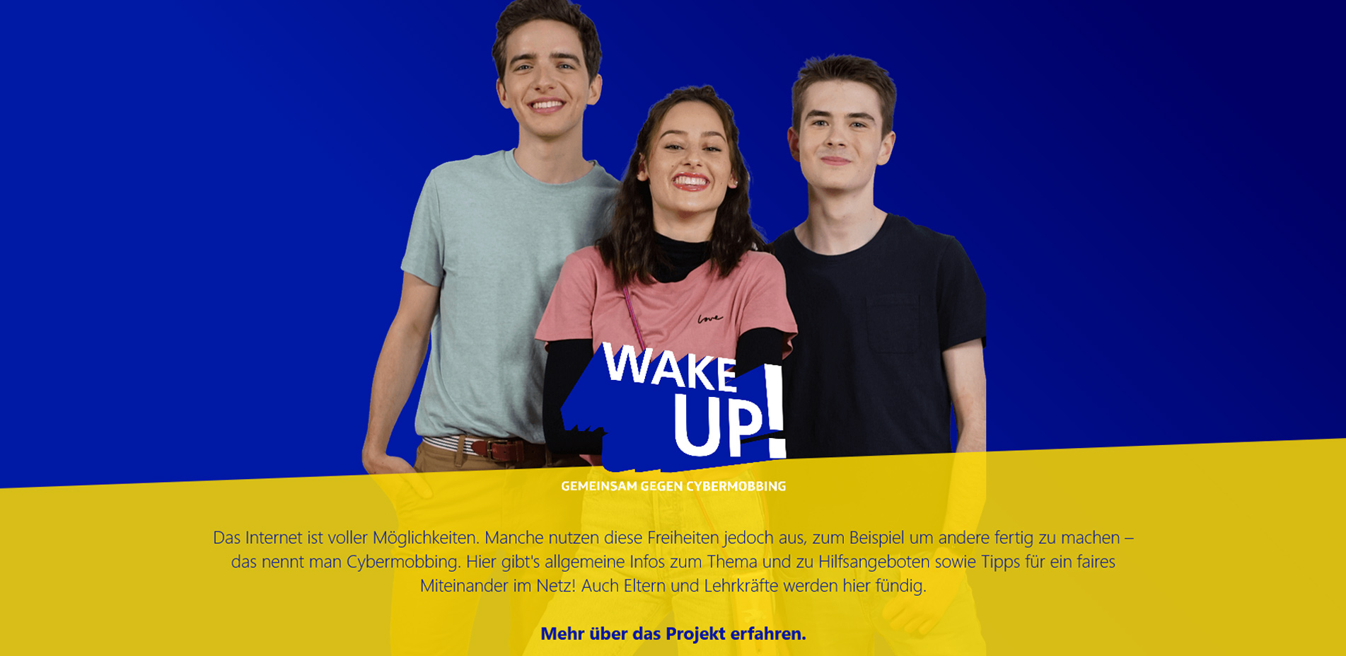 Mit der Initiative „WAKE UP!” setzt O2 unter fachlicher Beratung der Freiwilligen Selbstkontrolle Multimedia-Diensteanbieter e.V. (FSM) und zusammen mit Cybermobbing-Hilfe e.V., YAEZ und weiteren Partnern ein Zeichen gegen Cybermobbing und digitale Gewalt. Die Initiative verfolgt das Ziel, digitale Souveränität von Jugendlichen und den gesellschaftlichen Zusammenhalt zu stärken, damit alle an einer zunehmend digitalen Gesellschaft teilhaben können. Weitere Informationen unter: wakeup.jetzt (öffnet in neuem Tab)