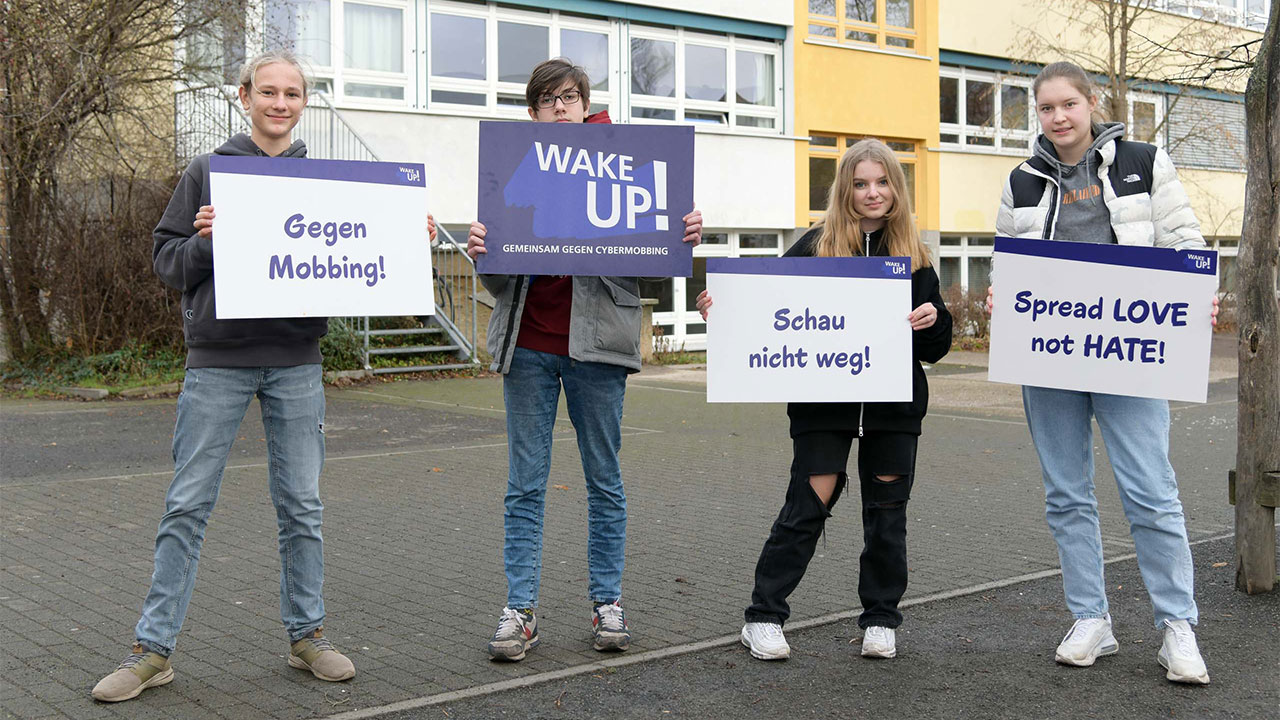 Mit den Videos, die während der Aktionswoche entstanden sind, können Jugendlichen beim bundesweiten WAKE UP! Videowettbewerb (öffnet in neuem Tab)teilnehmen. Viele haben bereits ihre Wettbewerbsbeiträge eingereicht. Darin klären sie zum Beispiel andere Jugendliche über Cybermobbing auf oder machen sich dafür stark, Mobbing in der Klasse und im Netz keine Chance zu geben. Natürlich warten auch Gewinne auf die Jugendlichen.