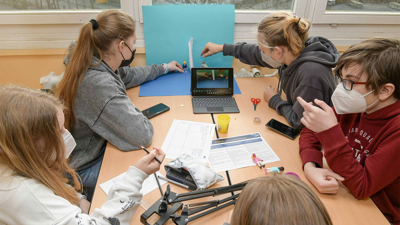Im Anschluss an die Workshops drehten die Jugendlichen in Kleingruppen kreative Videos. Darin entwickelten sie Lösungsansätze für fiktive Cybermobbing-Situationen. Einige stehen selbst vor der Kamera, andere setzen ihr Video mit Spielfiguren in Stop-Motion-Technik um.