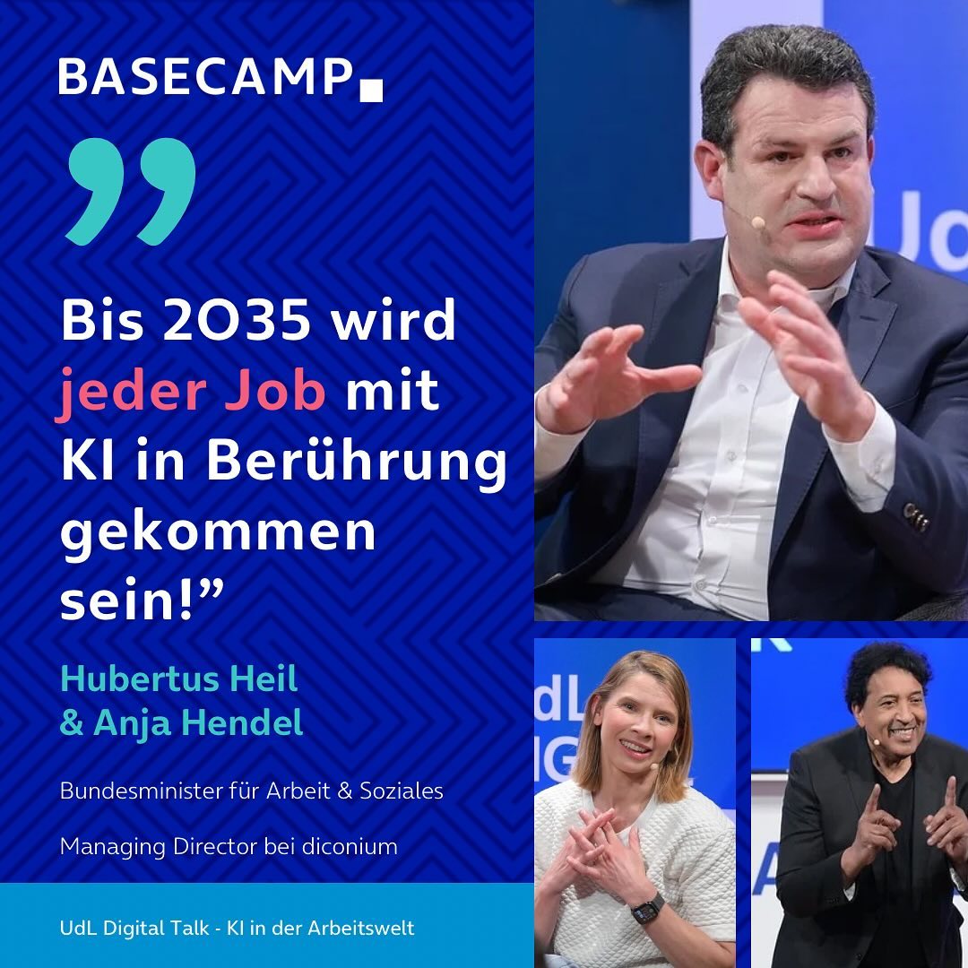 Generative Künstliche Intelligenz ist dabei, unsere Arbeitswelt in kurzer Zeit drastisch zu verändern. Aber wie gut sind wir in Deutschland darauf vorbereitet? Und was können Politik und Gesellschaft dafür tun, den revolutionären Wandel der Arbeit möglichst positiv zu gestalten? Darüber diskutierten Hubertus Heil, Bundesminister für Arbeit und Soziales, und Anja Hendel (öffnet in neuem Tab), Managing Director bei diconium, beim UdL Digital Talk im BASECAMP.