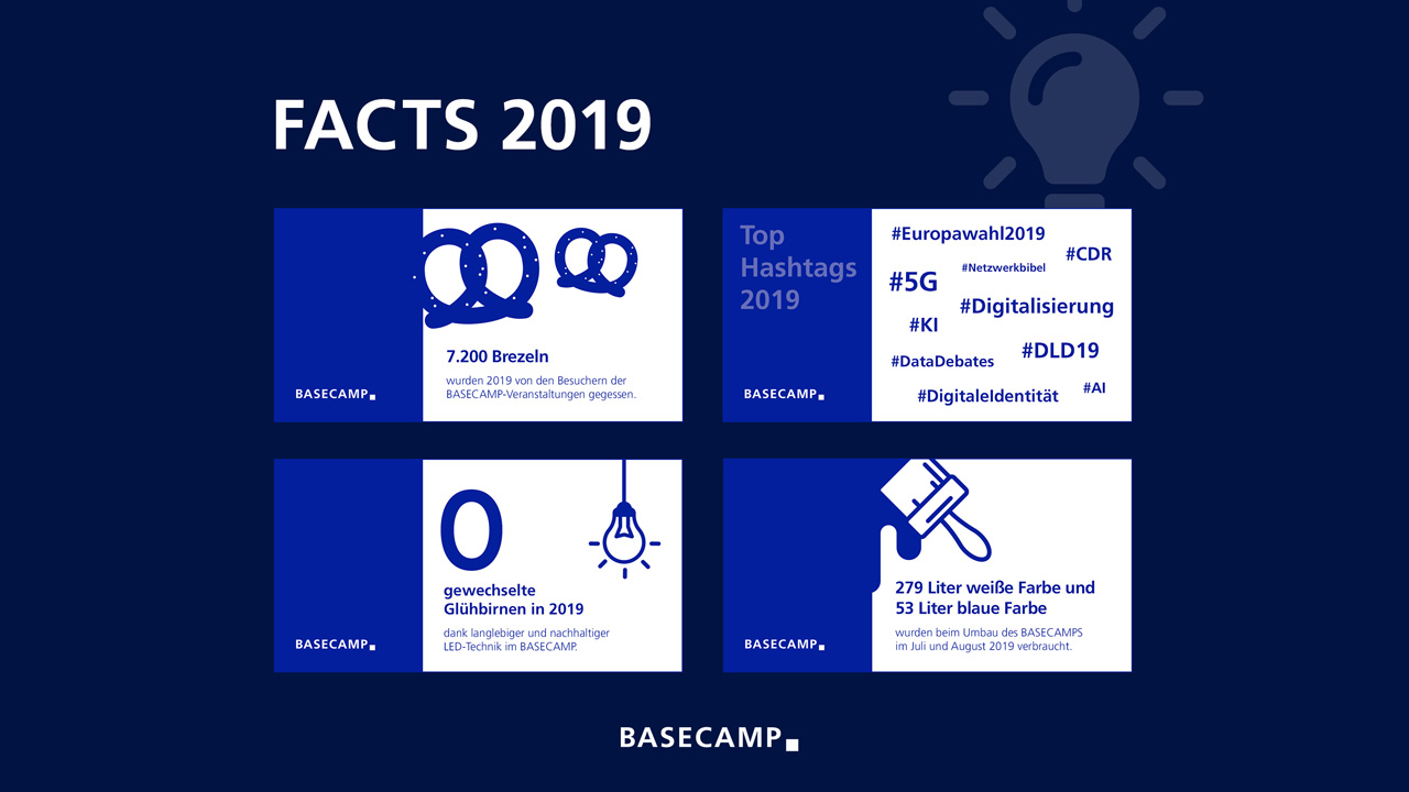 2019 war für uns ein Jahr, das einige Neuerungen und sehr viele spannende Themen für das BASECAMP bereithielt – unabhängig davon, ob es dabei um (Digital-)politik, gesellschaftliche Aspekte, digitale Verantwortung oder Innovationen ging. Ein Meilenstein war etwa die Versteigerung der 5G-Frequenzen durch die Bundesnetzagentur in der ersten Jahreshälfte, gefolgt von der anschließenden Diskussion, warum der Netzausbau in Deutschland nicht überall das gewünschte Tempo aufnimmt. Zu beobachten war auch ein wachsendes gesellschaftliches Bewusstsein für die Auswirkungen der Digitalisierung auf das Klima, ihr steigender Einfluss auf unsere Gesellschaft sowie eine erneut zunehmende Relevanz von Themen wie KI, Internet der Dinge oder Quanten-Computing.