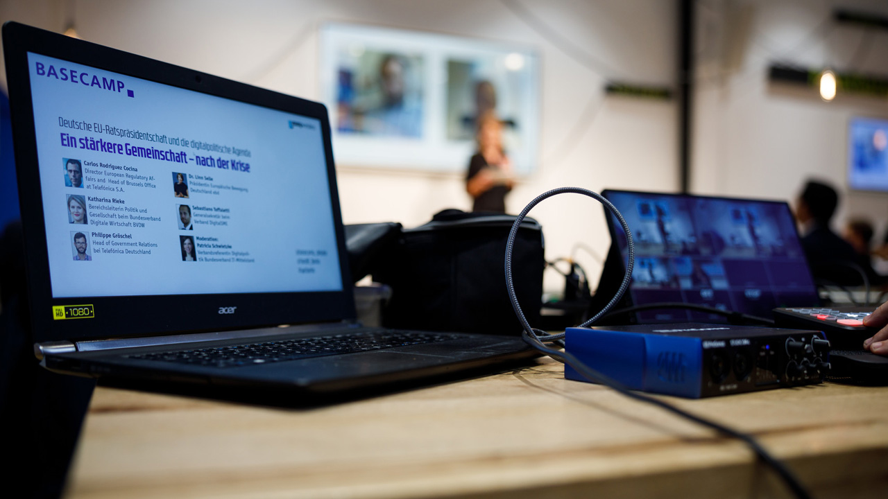 Das Online-Event wurde von Patricia Schwietzke geleitet. Neben ihr live im BASECAMP in Berlin nahmen Dr. Linn Selle, Präsidentin der Europäischen Bewegung Deutschland und Gewinnerin des Women of Europe Award, ebenso wie Katharina Rieke, Bereichsleiterin Politik und Gesellschaft beim BVDW, an der Debatte teil. Der Diskussion per Videokonferenz zugeschaltet waren zudem Sebastiano Toffaletti, Generalsekretär beim Verband DigitalSME, und Carlos Rodriguez Cocina, Director European Regulatory Affairs and Head of Brussels Office von Telefónica S.A..