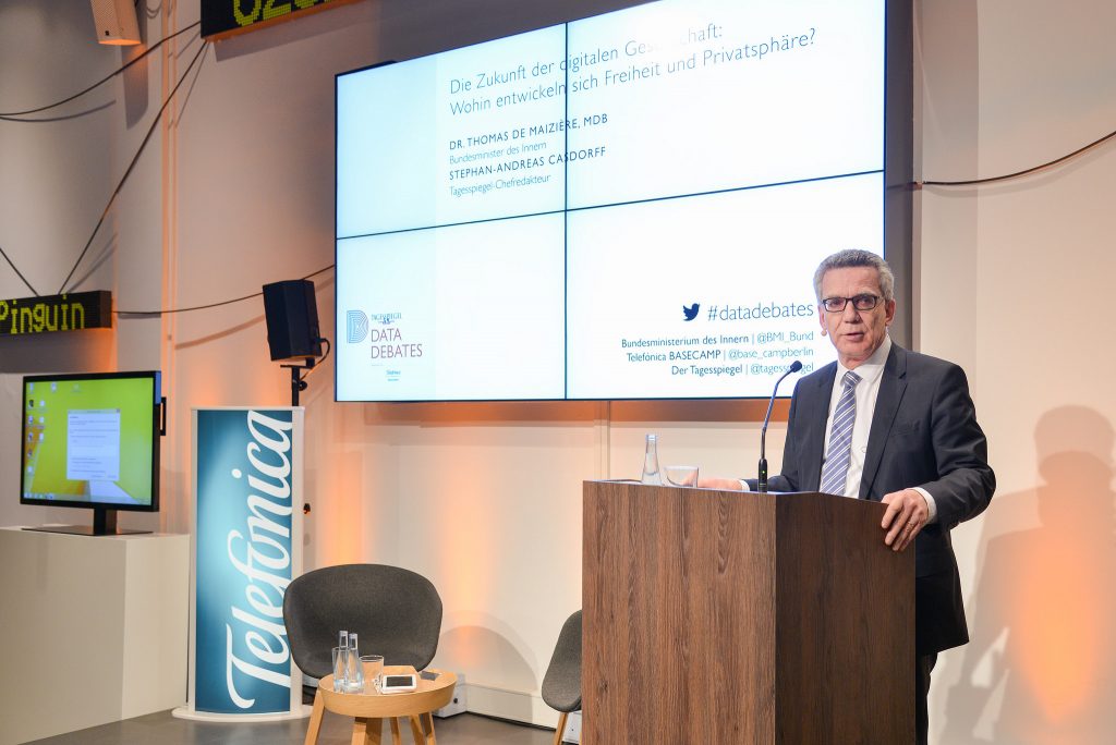 Bei den Tagesspiegel Data Debates (öffnet in neuem Tab)ging es am Donnerstag im Telefónica BASECAMP (öffnet in neuem Tab)um die Zukunft der digitalen Gesellschaft und eine wichtige Frage: Wohin entwickeln sich Freiheit und Privatsphäre? Bundesinnenminister Thomas de Maizière lieferte sehr interessante Antworten, als er von Tagesspiegel-Chefredakteur Stephan-Andreas Casdorff darüber befragt wurde. Telefónica Deutschland ist Initiating Partner dieser neuen Veranstaltungsreihe in Berlin.