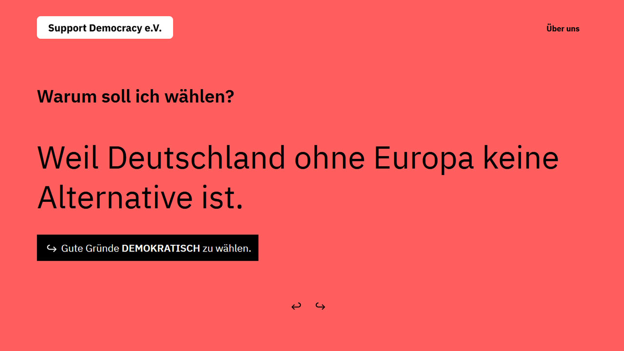 Im Vorfeld der jüngsten Europawahl gab es insbesondere Kampagnen und Initiativen, die dazu aufriefen, wählen zu gehen. Dazu gehörte etwa ein Wahlaufruf (öffnet in neuem Tab) von wichtigen Persönlichkeiten aus Wirtschaft, Politik und Gesellschaft oder eine Kampagne (öffnet in neuem Tab) der Stiftung Zukunft Berlin, der Initiative Starke Demokratie! und des Verkehrsverbunds Berlin-Brandenburg, die mit Reels und kurzen Interviews auf Instagram, TikTok und Youtube Jugendliche zur Europawahl informieren. Der Verein Support Democracy versammelte zudem „Gute Gründe, wählen zu gehen“ (öffnet in neuem Tab) und bespielte damit ebenfalls seine Social-Media-Kanäle, um junge Menschen zu erreichen.