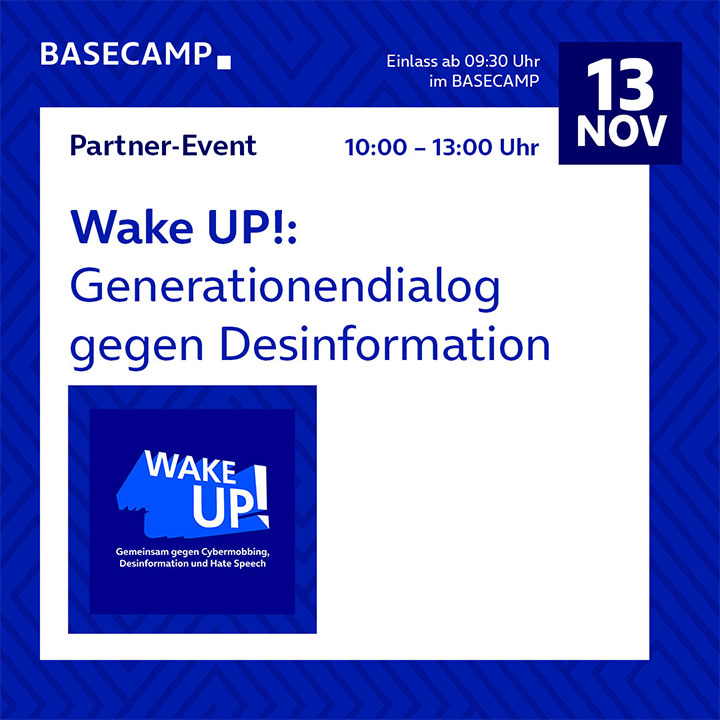 Wir weisen darauf hin, dass bei unseren öffentlichen Veranstaltungen auch Bild- und Tonmaterial in Form von Fotos oder Videoaufzeichnungen durch von uns beauftragte oder akkreditierte Personen und Dienstleister erstellt wird. Die Aufnahmen werden für die Event-Dokumentation und Event- Kommunikation auf den Social-Media-Kanälen des BASECAMP genutzt. Sie haben das Recht auf Information und weitere Betroffenenrechte. Informationen zu unseren Datenverarbeitungen sowie Ihren Betroffenenrechten finden Sie hier.