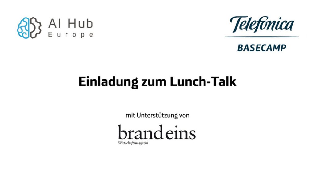 Am 19. Februar erwartet uns im Telefónica BASECAMP der dritte Lunch-Talk (öffnet in neuem Tab) des Nachrichtenportals AI Hub Europe (öffnet in neuem Tab) mit Unterstützung durch das Magazin brand eins (öffnet in neuem Tab). Die Veranstaltungsreihe über künstliche Intelligenz (öffnet in neuem Tab) (KI) schaut dieses Mal nach, was aus der groß verkündeten KI-Strategie der Bundesregierung geworden ist. Außerdem geht es um die Frage, ob für KI neue ethische Prinzipien benötigt werden und wie man sie umsetzen kann. Zu der Anmeldung geht es hier (öffnet in neuem Tab).