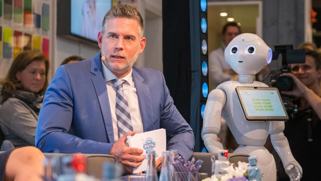 Aber im Telefónica BASECAMP wurde nicht nur debattiert. Es gab auch modernste Technik zu bestaunen: zum Beispiel Yolandi, den Pressesprecher-Roboter der Zeitarbeitsfirma Robozän, und Bocusini: einen 3D-Drucker für Nahrungsmittel, den das Startup Food2Taste präsentierte. Und der niedliche Roboter Pepper plapperte als Moderator öfter einmal dazwischen.
