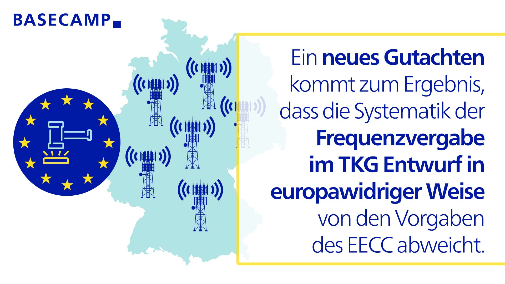Ein Rechtsgutachten von Univ.-Prof. Dr. Christian Koenig (öffnet in neuem Tab) (Direktor am Europäischen Zentrum für Integrationsforschung an der Rheinischen Friedrich-Wilhelms-Universität Bonn (öffnet in neuem Tab)) kommt zu dem Ergebnis, dass die Systematik der Frequenzvergabe im Regierungsentwurf des TKG-E in europarechtswidriger Weise von den Vorgaben des EECC abweicht.
