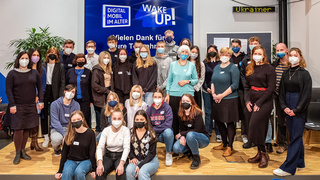Ein so generationenübergreifendes Publikum wie an diesem Morgen war wohl noch nie vor Ort im BASECAMP versammelt. Zusammen mit mehreren Senior:innen verteilten sich über 50 Neunt- und Zehntklässler aus zwei Berliner Gymnasien an den Gruppentischen, um über die Themen Desinformation und digitale Medien zu sprechen. Das Event brachte erstmals die beiden Sozialprogramme von Telefónica, „WAKE UP!” (öffnet in neuem Tab) sowie Digital mobil im Alter (öffnet in neuem Tab), zusammen und wurde gemeinsam mit der Stiftung Digitale Chancen (öffnet in neuem Tab) und dem Verein Freiwillige Selbstkontrolle Multimedia-Diensteanbieter (öffnet in neuem Tab) organisiert.