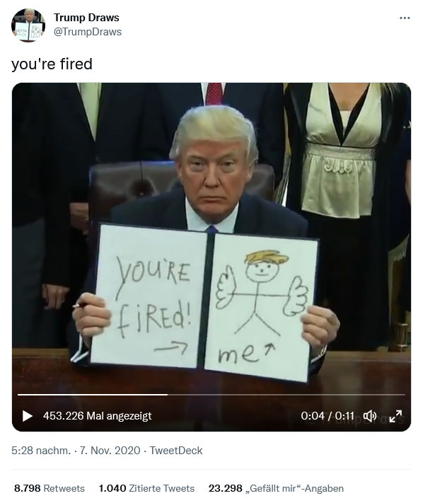Was popkulturell-politische Entwicklungen angeht, hinkt Deutschland den USA auch in Sachen Memes mal wieder einige Monate hinterher. So wurden die Präsidentschaftswahlen 2020 vom TV-Sender CNN vorab zur „Meme-Wahl“ erklärt, was an Donald Trump und seine Anhänger:innen auf der einen und den Unterstützer:innen der Demokraten und Joe Biden auf anderen Seite lag, die sich mit Memes vor allem über Trump lustig machten (und zugegeben: von Trump gibt es auch einfach viel memetaugliches Material). Mit dem “Lincoln Project” (öffnet in neuem Tab) gab es sogar eine Gruppe von Trump-Gegnern innerhalb der Republikanischen Partei, die mit Memes, Videos und einer Social-Media-Kampagne dessen Wiederwahl verhindern wollten.