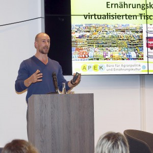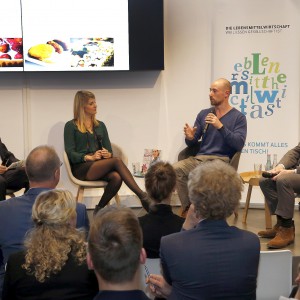 Vor rund 50 Gästen eröffnete Stephan Becker-Sonnenschein, Geschäftsführer von DIE LEBENSMITTELWIRTSCHAFT, die Gesprächsrunde mit einem ebenso appetitlichen wie spannenden aber auch kuriosen Phänomen: Mok-Bang heißt der neueste Trend aus Korea, bei dem man anderen Menschen live beim Essen zusieht. Aber was bringt uns dazu, unser Essen zu fotografieren und ins Netz zu stellen oder solche Fotos und Filme von anderen massenweise anzuschauen? Über diese Fragen diskutierten Prof. Peter Wippermann, Professor für Kommunikationsdesign an der Folkwang Universität der Künste in Essen und Mitglied des Wissenschaftlichen Beirats von DIE LEBENSMITTELWIRTSCHAFT, Dr. Daniel Kofahl, Ernährungssoziologe und Gründer des Büros für Agrarpolitik und Ernährungskultur, und Felicitas Then, Journalistin, Fernsehköchin und Siegerin der Sat1-Koch-Casting-Show „The Taste“ 2013.