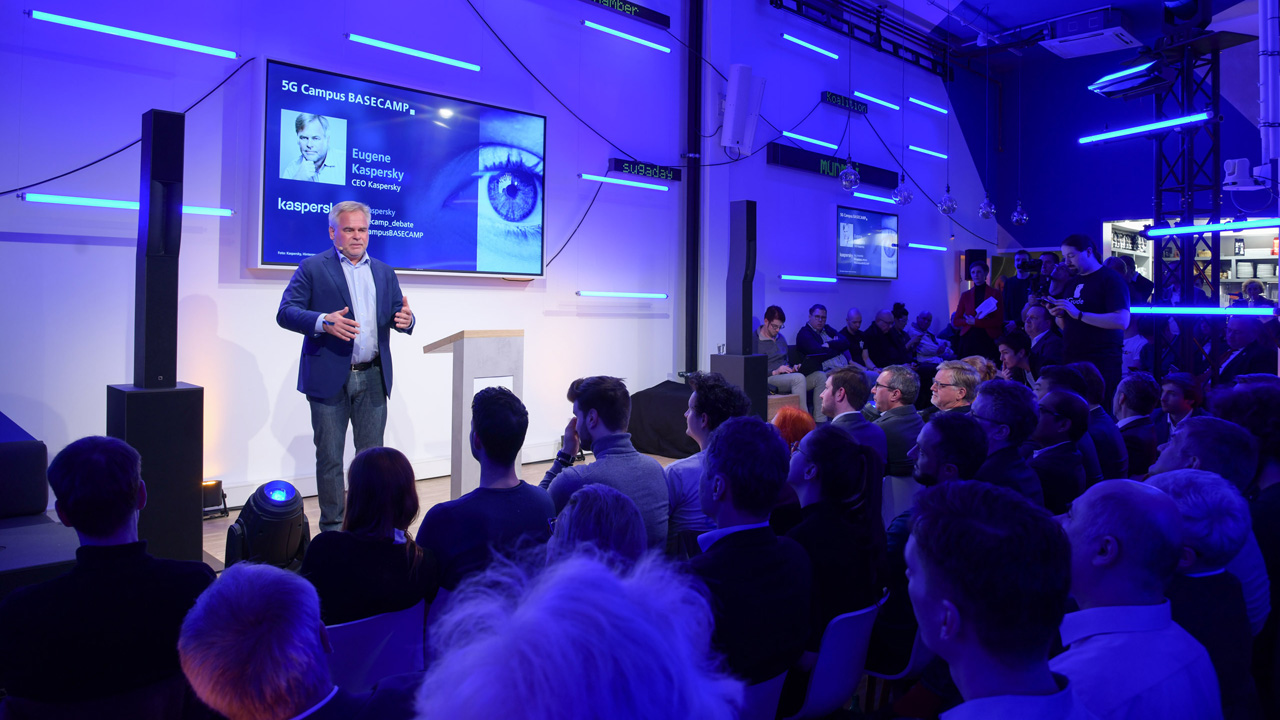 Die Möglichkeiten, die uns der neue Mobilfunkstandard 5G aufgrund seiner Geschwindigkeit und geringeren Verzögerungszeit bietet, beflügeln die Fantasie und fordern zum Nachdenken auf. Um die Technologie für ein breites Publikum greifbar zu machen, hat Telefónica Deutschland das BASECAMP in Berlin Mitte zum ersten öffentlichen 5G Campus verwandelt. Am Montag, 9. März, wurde er offiziell eröffnet. Dazu präsentierten der Vorstandsvorsitzende von Telefónica Deutschland Markus Haas (öffnet in neuem Tab), Cybersicherheitsexperte Eugene Kaspersky (öffnet in neuem Tab), CEO von Kaspersky Lab, und Arne Schönbohm (öffnet in neuem Tab), Präsident des Bundesamtes für Sicherheit in der Informationstechnik (BSI), ihre Visionen und Gedanken zu 5G.