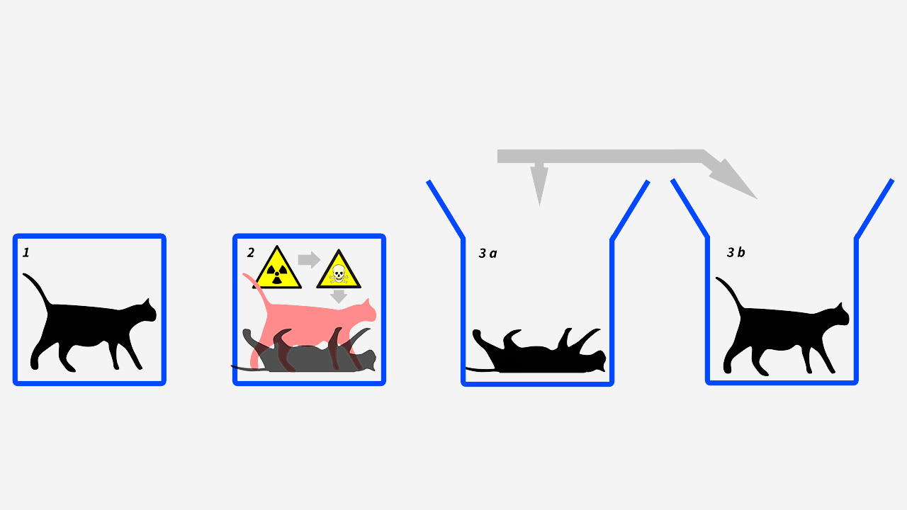 Wie komplex muss ein Phänomen wie die Quantenmechanik (öffnet in neuem Tab) sein, wenn selbst Albert Einstein (öffnet in neuem Tab), der große Physiker des 20. Jahrhunderts, daran verzweifelte? Obwohl oft von dem Terminus der „Quantenphysik“ die Rede ist, hat diese mit den klassischen Gesetzen der Lehrbuchphysik wenig gemein. In den 1930er Jahren machten Albert Einstein und Erwin Schrödinger (öffnet in neuem Tab) darauf aufmerksam, dass die Quantenmechanik auf paradoxen Aussagen beruhe. In der Welt der Quanten ist es möglich, dass Objekte gleichzeitig in mehreren Zuständen existieren. Partikel verändern sich, wenn sie beobachtet werden, so als ob das Wasser nur dann blau ist, wenn man hinschaut und ansonsten rot. Das berühmteste Gedankenexperiment ist „Schrödingers Katze (öffnet in neuem Tab)„, die gleichzeitig lebend und tot ist. Erst wenn der Deckel der Kiste, in der sich die Katze befindet, aufgemacht wird, löst sich der Zwitterstatus auf.