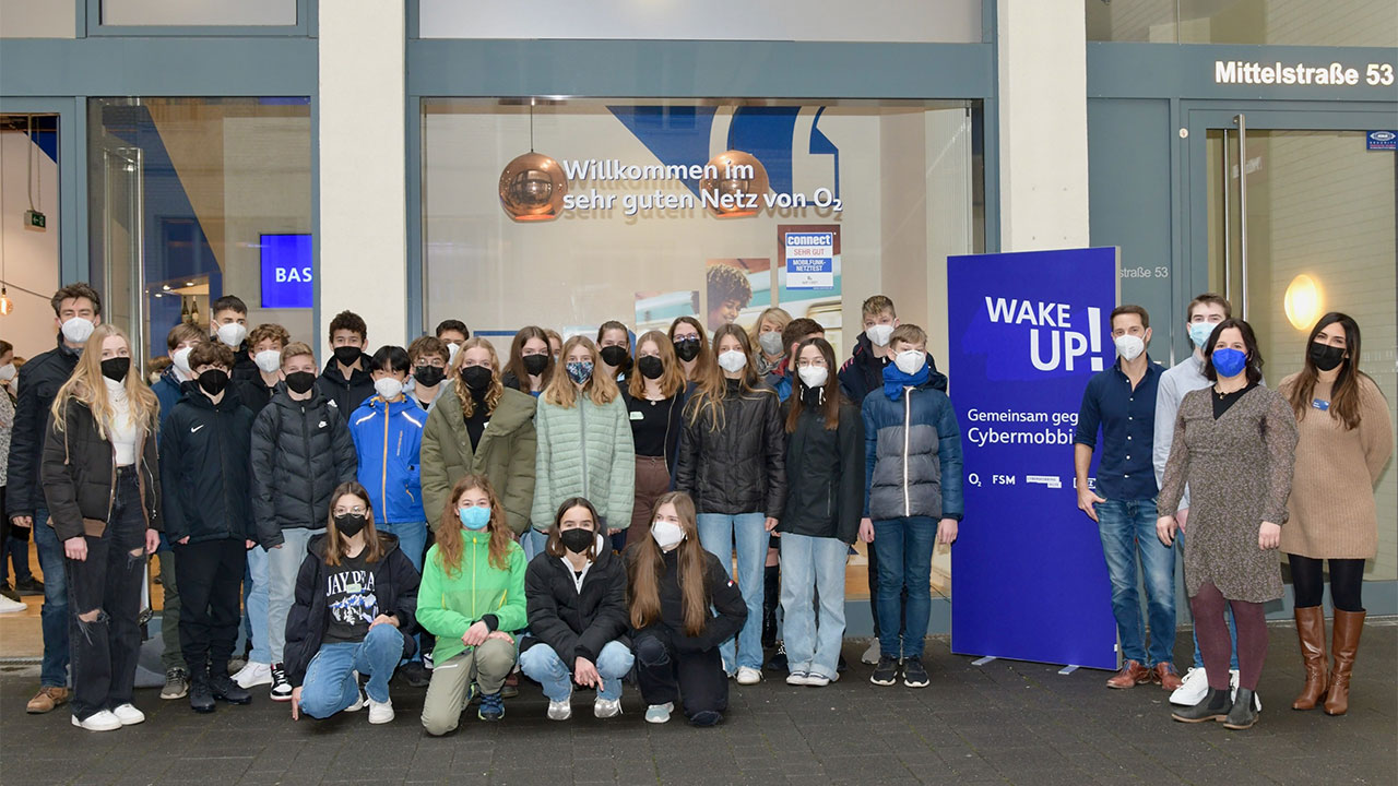Mit der Initiative „WAKE UP!” setzt O2 unter fachlicher Beratung der Freiwillige Selbstkontrolle Multimedia-Diensteanbieter e.V. (FSM) und zusammen mit Cybermobbing-Hilfe e.V., YAEZ und weiteren Partnern ein Zeichen gegen Cybermobbing und digitale Gewalt. Sie unterstützt Schulklassen dabei, das Thema Cybermobbing zu erarbeiten und leistet so sie einen Beitrag zur mobbingfreien, digitalen Schulumgebung und stärkt die Medienkompetenz der Jugendlichen.