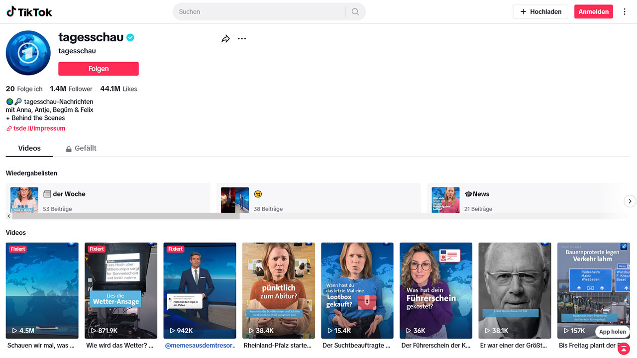Das Gute für uns ist, wir müssen aber auch gar nicht diese viralen Klickzahlen unbedingt immer erreichen. Bei uns sind qualitative Ziele auch ganz weit vorne. Uns ist es wichtig, dass wir mit Nachrichten manchmal auch Leute erreichen, die wir mit anderen Tagesschauprodukten vielleicht so nicht erreicht hätten. Das sind dann vielleicht nicht immer die großen Massen, aber trotzdem haben wir damit etwas geschafft. Und wir behalten uns natürlich vor, wenn wir davon ausgehen als Nachrichtenanbieter, etwas hat einen Nachrichtwert, dann setzen wir dieses Thema und lassen uns von TikTok und den Trends dort nicht so beeinflussen.
