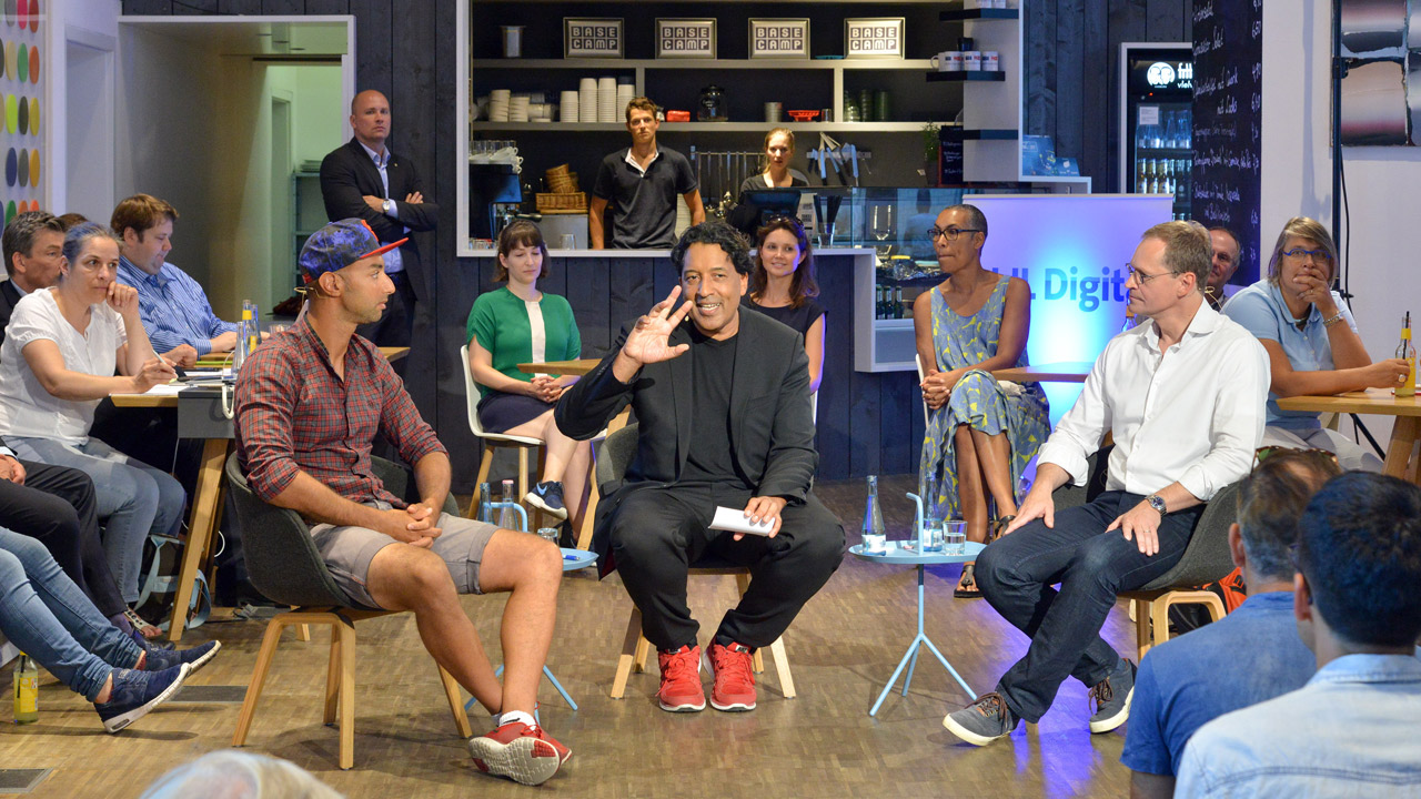 „Wie nachhaltig ist die Entwicklung der Startup-City?“, fragt also der Moderator Cherno Jobatey seine Gäste an diesem Abend. „Wir tun alles, um die Situation zu verstetigen“, antwortet Michael Müller. „Zusatz-Investitionen im Hochschul-Bereich, das Sichern der Flächen, das Vernetzen mit anderen internationalen Partnern tragen viel zum nachhaltigen Wachstum bei. Wir sind seit Jahren über dem Bundesdurchschnitt.“ Wachstum in Berlin finde statt, stellt er fest. Damit es auch so bleibt, soll sich auch die Verwaltung modernisieren und digitalisieren, die Kooperation von etablierten Firmen und Startups gefördert werden.