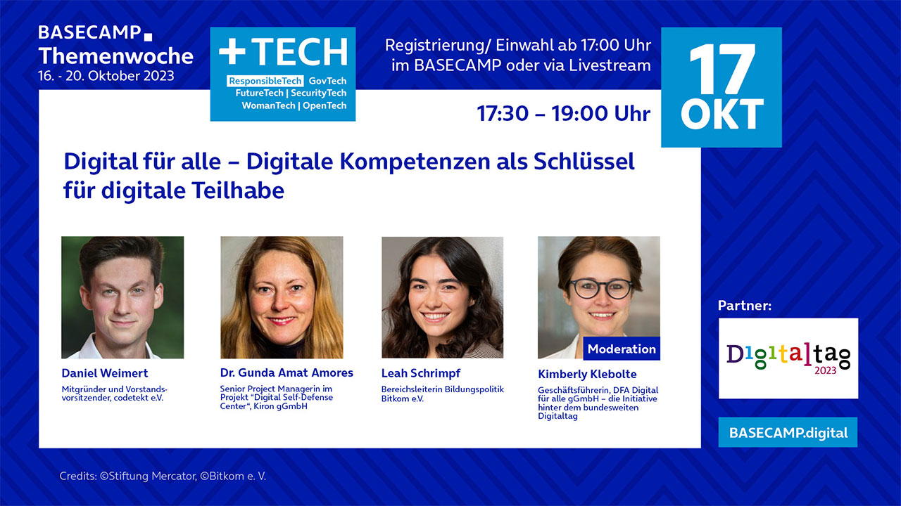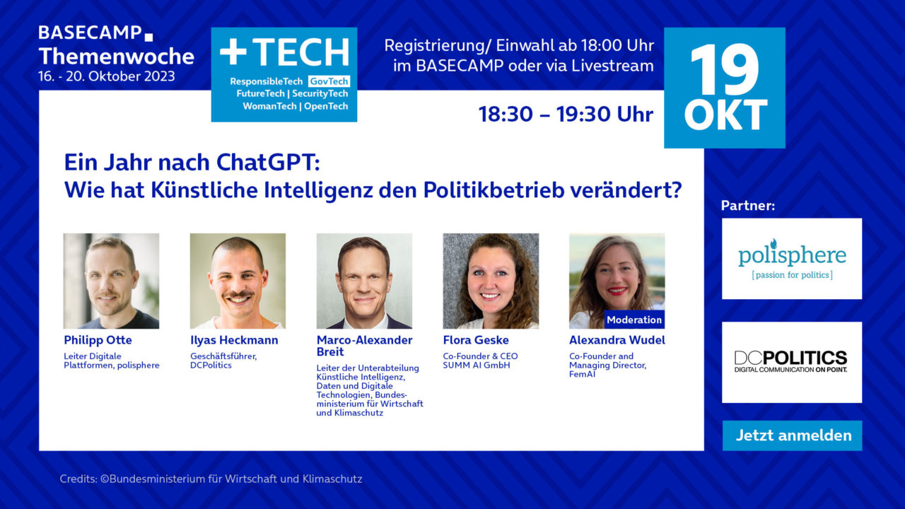 Vom 16. – 20. Oktober 2023 drehte sich bei uns im BASECAMP alles um das Thema „+TECH“. In dieser Woche diskutierten wir gemeinsam mit unserer Community über alles, was in diesem Jahr neu, aufregend und spannend in der bunten, digitalen +TechWelt war.