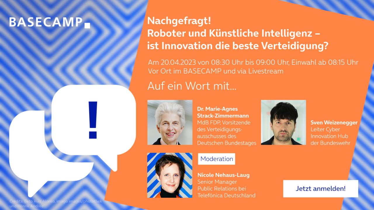 20. Apr. 2023 EVENT BASECAMP Nachgefragt!: Roboter und Künstliche Intelligenz – ist Innovation die beste Verteidigung?
