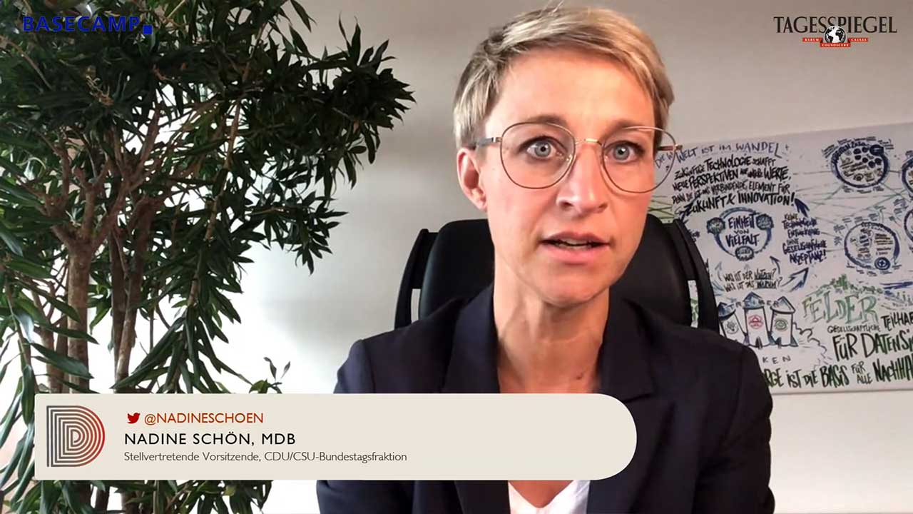 Beim Thema Digitalisierung der Bildung forderte Nadine Schön (öffnet in neuem Tab) das Bildungsideal von Wilhelm von Humboldt (öffnet in neuem Tab), prägend für das 19. und 20. Jahrhundert, müsse ins digitale Zeitalter übersetzt werden. Das bedeute nicht nur bessere Ausstattung von Schulen mit Laptops, Breitbandanschluss und Lernplattformen, sondern mehr Fortbildung für Lehrkräfte und Offenheit in den Schulen für neue Technologien. Da Schule Ländersache sei, könne der Bund mit einem digitalen Bildungspakt nur anregen und unterstützen.