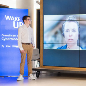 Selbst von Cybermobbing betroffen, bar einer Anlaufstelle, gründete der damals 13-jährige Schüler Lukas Pohland den Verein Cybermobbing-Hilfe e.V. (öffnet in neuem Tab) Seitdem betreibt der Verein mit Lukas als Vorsitzenden aktiv Präventionsarbeit gegen Cybermobbing und hilft betroffenen Kindern und Jugendlichen durch ein Beratungsangebot. Telefónica kooperiert im Zuge der Initiative WAKE UP! mit dem Verein und der Freiwilligen Selbstkontrolle Multimedia-Dienstanbieter e.V. (FSM). Das Bündnis stellt nicht nur das Portal wakeup.jetzt (öffnet in neuem Tab) mit einem umfassenden Informationsangebot zum Thema Cybermobbing zur Verfügung, sondern hat auch die bundesweit erste spezialisierte Cybermobbing-Beratungsstelle eingerichtet.