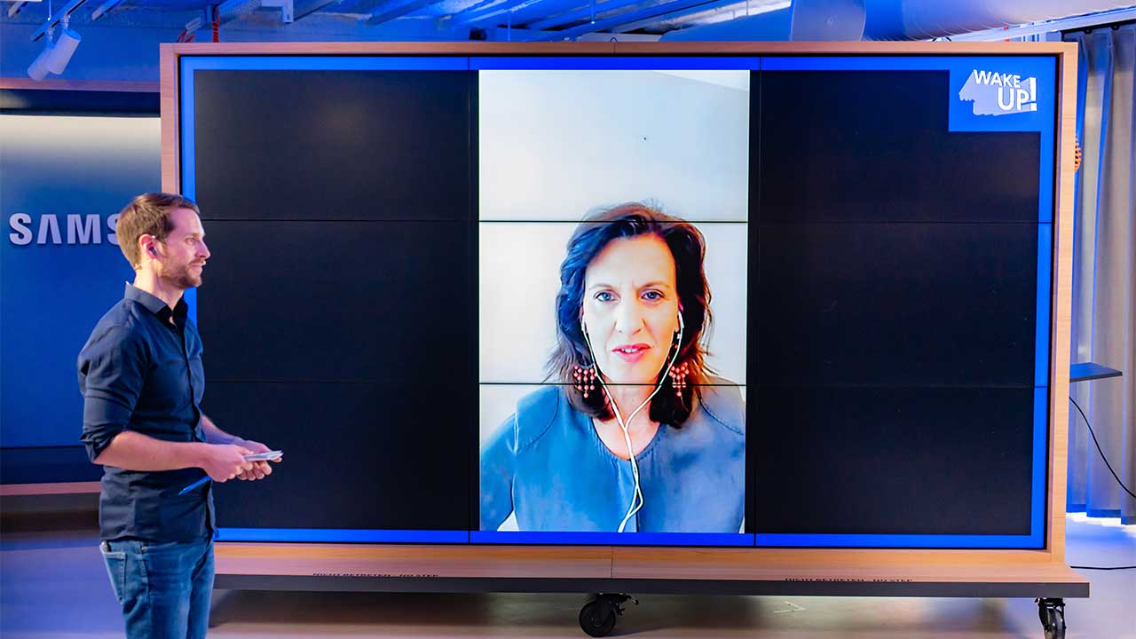 Ausrufezeichen zu setzen, aufzurufen „WAKE UP Jetzt“: „Für Respekt im Netz, für ein gutes Miteinander im Netz“, wie es Claudia von Bothmer, Head of Corporate Responsibility Telefónica Deutschland, forderte, die den Schüler*innen remote zugeschaltet war. „Es ist uns wichtig, dass Menschen, dass vor allem junge Menschen Lust haben, an der Digitalisierung teilzunehmen, sie mitzugestalten, dass sie sich nicht ausschließen lassen“, erklärt sie auch hinsichtlich der eigenen Verantwortung als Telekommunikationsunternehmen.